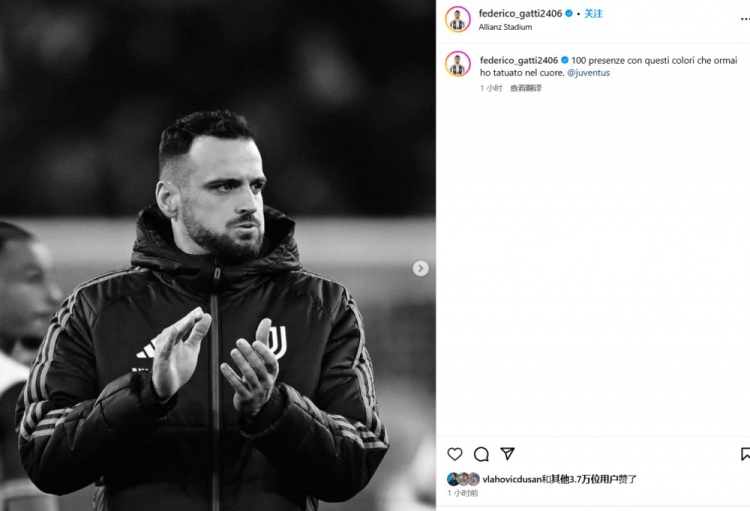 3月4日訊 意甲第27輪,尤文2-0維羅納,加蒂上演了尤文生涯100場里程碑。賽后加蒂更新了社媒。