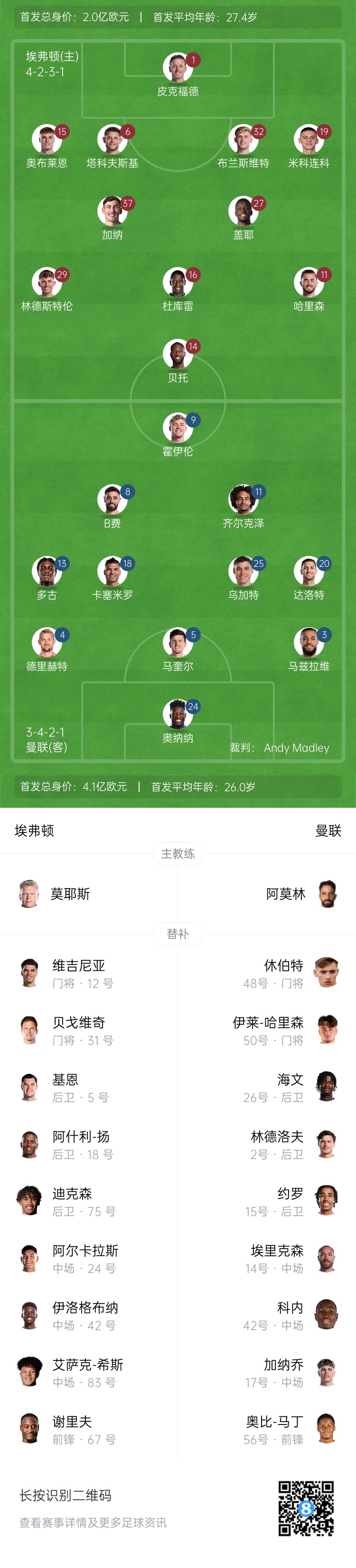 埃弗頓首發(fā):1-皮克福德、15-奧布萊恩、6-塔科夫斯基、32-布蘭斯維特、19-米科連科、27-蓋耶、37-詹姆斯-加納、16-杜庫(kù)雷、29-林德斯特倫、11-杰克-哈里森、14-貝托